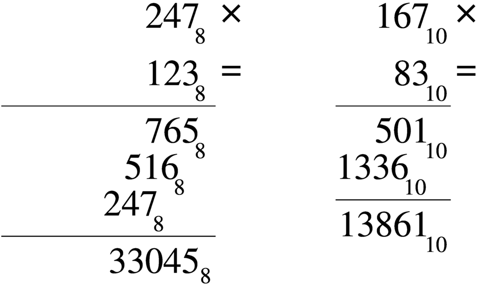 Figura 2.16. Esempio di moltiplicazione con i numeri in base otto. |
