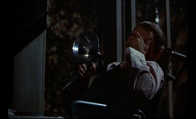 Même si cette histoire ne produit pas un suspense démentiel, reste que la peur d'être vu éprouvée par le voyeur, d'être pris la main ou l'œil dans l'appartement d'un voisin est naturellement ressentie, mettant une fois de plus le spectateur devant ses contradictions, entre le désir de voir sans être vu et le sentiment de culpabilité d'être un voleur d'intimité, ce qui demeure un interdit social très fort. Ce suspense hitchcokien n'est peut-être pas aussi intense qu'il a pu l'être sur d'autres films, n'empêche, il n'est pas juste un procédé mécanique et astucieux pour divertir, il est très bavard et nous dit plein de choses qui fouillent l'âme à la recherche des petits trucs cracras qu'on y cache. Y a pas à dire, messieurs dames, monsieur