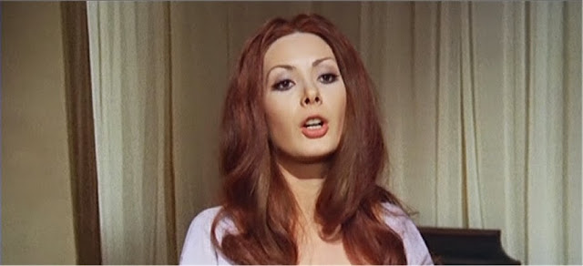 J'ai pour cette dernière une attirance sans limite. Si j'ai regardé ce pauvre film, c'est uniquement pour elle. Je peux voir n'importe quelle bouse pour pouvoir admirer cette femme. Notez bien que je dis bien "femme" et non "actrice". Elle n'est pas mauvaise comédienne, loin de là, elle maîtrise souvent son sujet mais disons qu'on ne lui a que très rarement donné des rôles compliqués à incarner. Je ne sais pas ce qui fait le charme de cette femme : la blancheur laiteuse de sa chair, ses yeux de biche, son longs cheveux noirs, la forme appétissante de ses seins ou la courbe tentatrice de ses hanches? Je suis en amour pour cette française devenue italienne d'abord par profession, puis par amour. Et pour sa carrière comico-polissone, j'éprouve en toute franchise une véritable admiration. Sont-ce mes yeux de Rodrigue pour elle qui font mon regard fasciné?