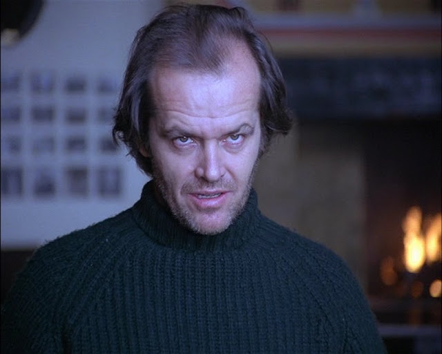 Jack Nicholson dans la liste des éléments majeurs qui font de "The shining" un grand film. Je suis un chouïa plus partagé! Ohhh, calmez-vous! J'ai dit "un chouïa". J'adore cet acteur, un cabotin de première catégorie, mais justement, je le préfère en retenue. Or, ici, il doit exprimer la lente mais inexorable montée de la folie chez un personnage de plus en plus violent. Difficile dans ce cas là d'être dans la retenue. Et sur une ou deux scènes, je l'ai trouvé un poil trop relâché, laissant rouler ses yeux, grimaçant de façon un peu trop excessive. Le plupart du temps il est juste parfait. Mais je dois confesser que sur ces deux scènes, il m'a semblé dépasser les bornes, ce qui incite à modérer mes ardeurs sur sa composition générale. Je note à ce propos que je ressens ces exagérations seulement maintenant, alors que lors des deux ou trois précédents visionnages, j'étais resté estomaqué par sa présence et la précision de son hystérie. Comme quoi, tout cela est tellement subjectif!