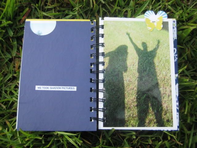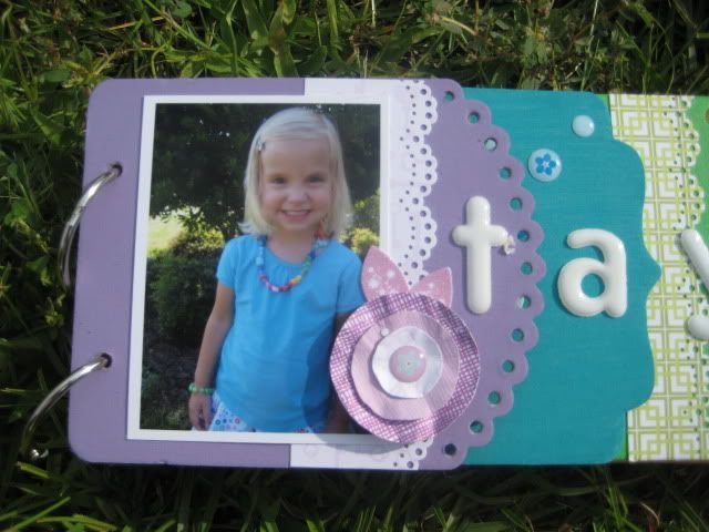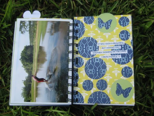 And lastly, another mini album. This one is far less complicated than yesterday's mini album but I am thrilled with the simple-ness of it. I took a chipboard album, and covered the pages in Party It Up paper, and sanded the edges down. I printed out pictures in the same size and adhered one to each page and added computer journaling under each picture. I added extra journaling to the back! Easy and simple!