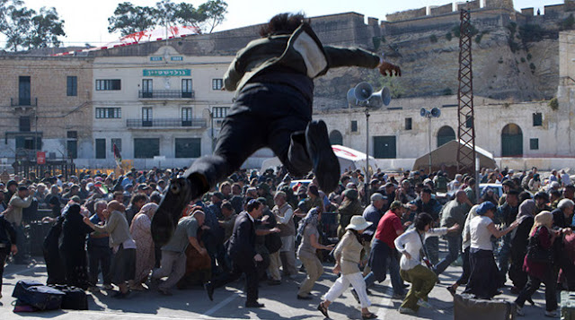 Here's the thing, though. These zombies don't feel much like zombies. For starters, there aren't any outstanding examples of gore in this movie. The coolest bit of gore came from Brad Pitt chopping off a hand. That's fairly unusual in a zombie movie (the lack of gore, not the hand-chopping), but I'm sure there is a precedent for it. Not a good precedent, but a precedent. These zombies don't act like any movie zombies I have seen, either. Instead, they were clearly inspired by swarming insects.