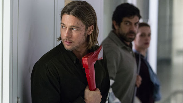 World War Z. The film has absolutely nothing in common with the book, aside from a multi-national scope and the presence of zombies. If you watch zombie movies for creative and excessive amounts of gore, then you might want to slow your proverbial roll. These aren't your classic, slow-moving, flesh-falling-off-the-bone zombies and there is no channeling of Tom Savini with these special effects. So, that is what