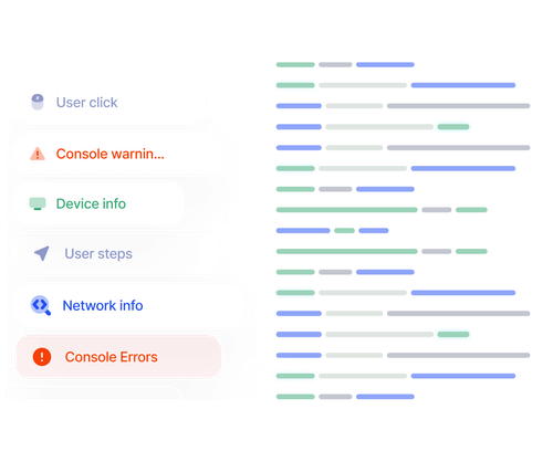 Every user session is recorded automatically. When a ticket comes in, agents can watch back exactly what the customer did, see where they got stuck, and spot errors in the console log. Full context without a single clarifying question.