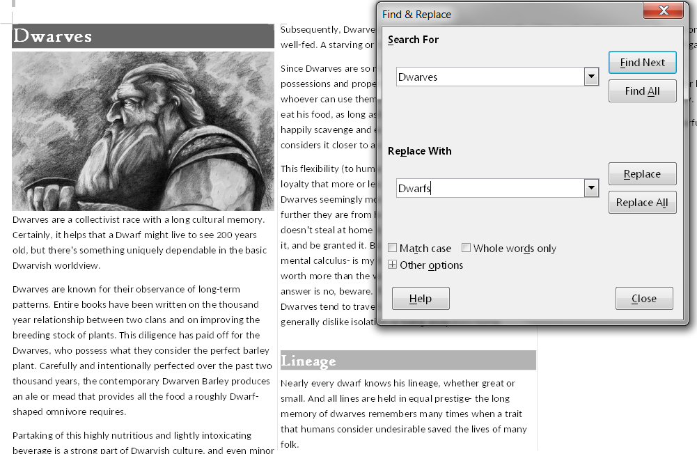 Each race is internally consistent and has unique but recognizable cultural aspects. What do I mean by that? I mean that my dwarves only ever drink beer and it makes sense. Elves are all distant arrogant philosophers and their written culture reflects that.