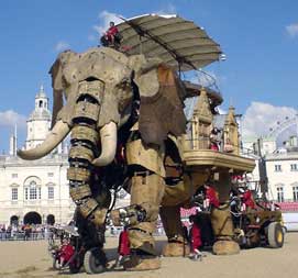 A thick-skinned blundering beast, storming and moaning its way out of Whitehall followed by a crowd of cheering onlookers? It could be Charles Clarke but no, it's The Sultan's Elephant.(photo gallery here)