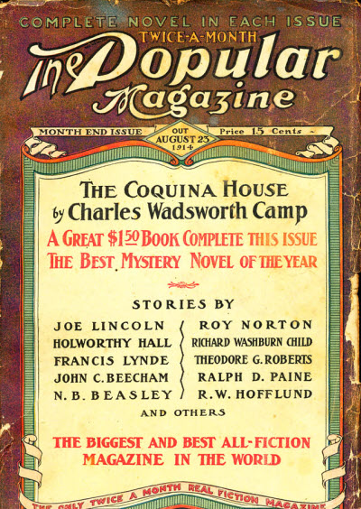 Dated “October 1, 1914” on the heading of the first page (only). typographic cover. With this issue The Popular Magazine changes from bearing “cover dates” to “publication dates” with the result that this issue has an earlier date than the previous issue. Details supplied by Kenneth R. Johnson. |