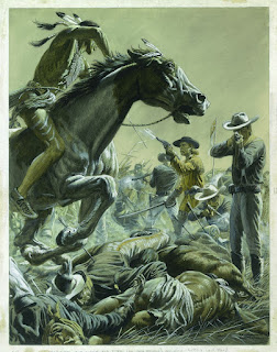 Moving swiftly on to another 1955 Lilliput,in the April edition, Sheppard bravely tackles "Suicide on the Little Big Horn" by John Prebble. John Edward Curtis Prebble (1915-2001) wrote many books and articles/short stories and is most often quoted today as inspiring the screenplay for "Zulu", the 1964 film.