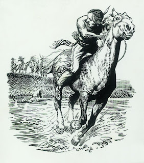 The main illustrations by Sheppard in the July issue accompanies "The big bull" by Neil Ewing. I've shown the third - thanks again to Brian Marks - but here are the published and the original art for the other pair