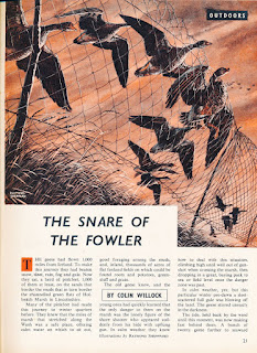 In the February issue of 1955, Raymond Sheppard drew illustrations for Colin Willcock's "The snare of the fowler"