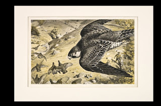 Malcolm Monteith (1913-1995) wrote extensively for Lilliput on the subject of natural history but also on many other topics. Monteith's dates again come from Harte's book mentioned above but I couldn't find any more details. He also wrote 3 other tales which were illustrated by Sheppard. The first was in May 1955 "Stoop out of Heaven" about how peregrine falcons are used to capture grouse.
