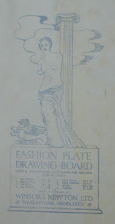 The art at the top of the page is owned by me, and the reverse of the artwork shows Sheppard - at this point - was using "Fashion Plate Drawing Board" by Winsor and Newton.