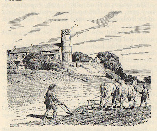 A farmer is ploughing when he hears the church bells pealing a warning |