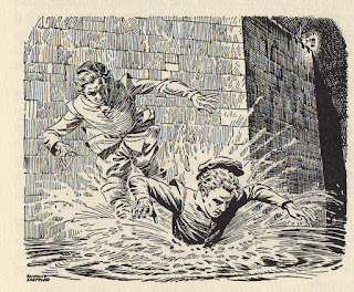 Two men jump into the moat |
