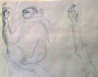 Please forgive the quality of some of the following but I think they're worth reproducing as they are sketches and may assist studies on how to draw chimpanzees