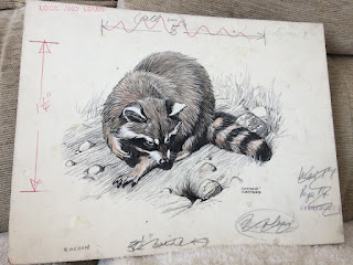 Interestingly, the original art for the raccoon came up for sale in 2016 so I captured the images:
