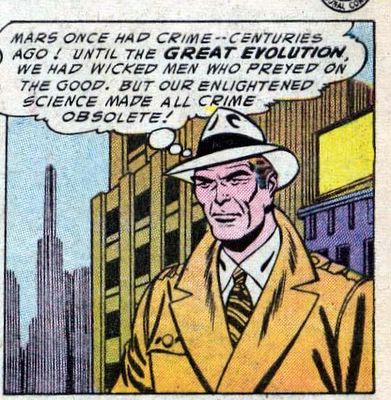It would be nice to say that future stories developed the Great Evolution concept, but in fact this was the sole mention during the long run (102 issues). And many future stories cast doubt on the notion of crime having been eradicated on Mars.