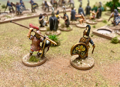 - Each Player had a major Hero from the Odyssey: Menolaus faced Paris, Ajax faced Sarpedon, Odysseus faced Aeneas... and Reilly played Achilles facing off against me with Hector, naturally. Each character led a 12 man Foot Companion unit and added their Hero dice to the attack score of their units (eg Odysseus 3 dice, Hector 5 etc)