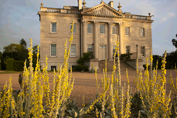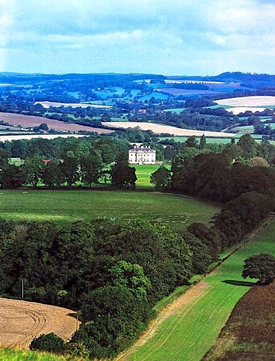 Portland stone, another local Jurassic oolitic limestone, was used for the rusticated basement story, the columns, the entablature, and the chimneys. Andrew Tanser carved the Rothermere coat of arms for the pediment, a feature seen in almost all the houses Palladio illustrated in