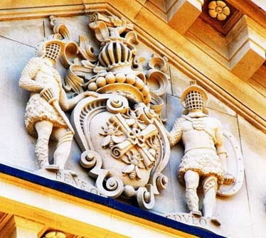 A detail of the door surround of the main entrance.