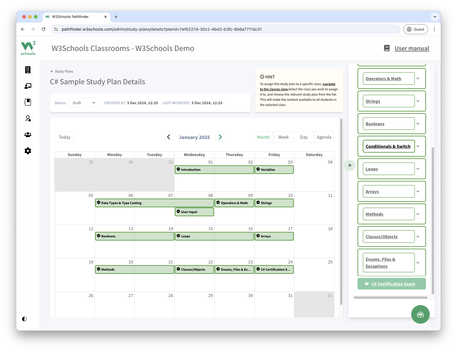 Save time with pre-built teacher materials and study plans. Easily organize your class with a timeline from the introduction of C# to the final exam.