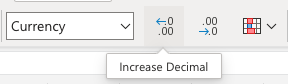 Note: Decreasing Decimals can make Excel round up or down numbers as more decimals get removed. This may be confusing if you are working on advanced calculations which require accurate numbers.