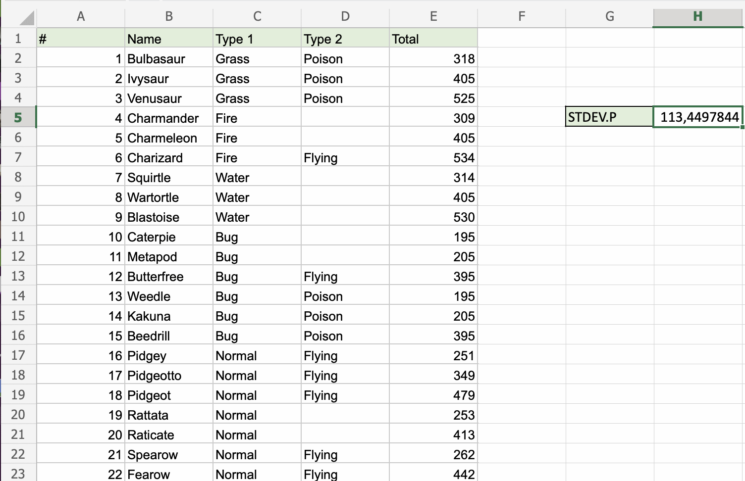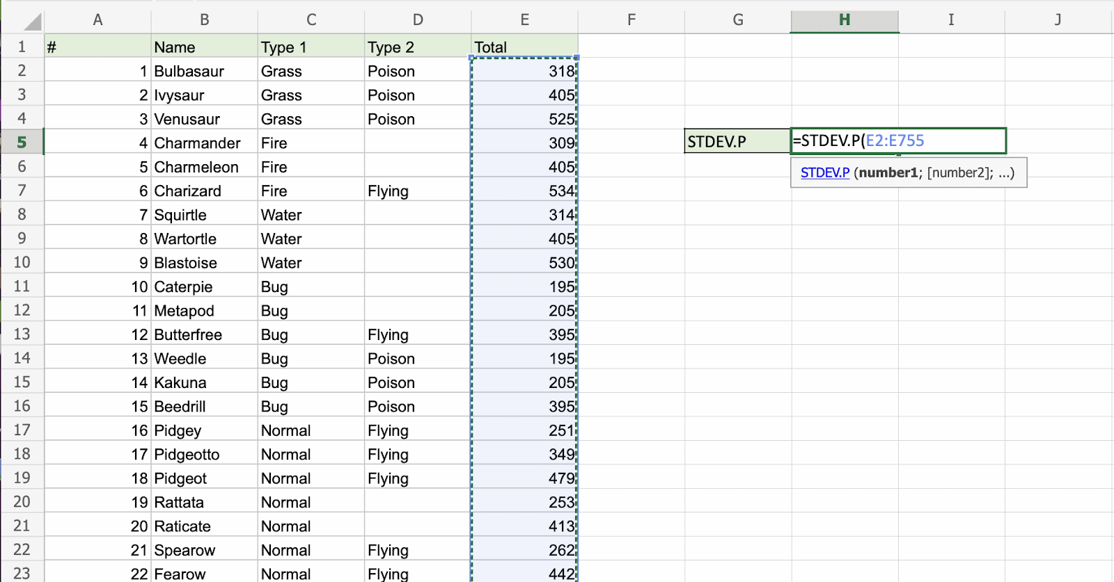 E2:E755), including all Pokemons - Hit enter