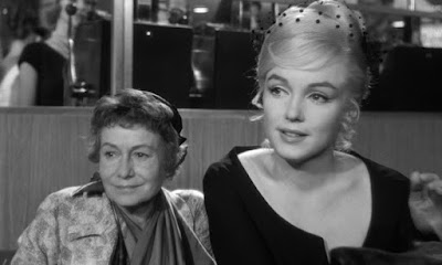 The Misfits when Gay comments on how sad Roslyn is, and she is shocked, most men always tell her how happy she seems. He replies, "That's because you make a man feel happy." This one exchange could sum up the whole of Monroe's career, and to her credit, she brings this schism to life in her performance as Roslyn. She creates a complete character, one whose internal sorrow keeps her from ever being subsumed by the things the men in her life project on her. She can play at being happy, but Monroe knows how to do it so that it's clear that it's just for show.