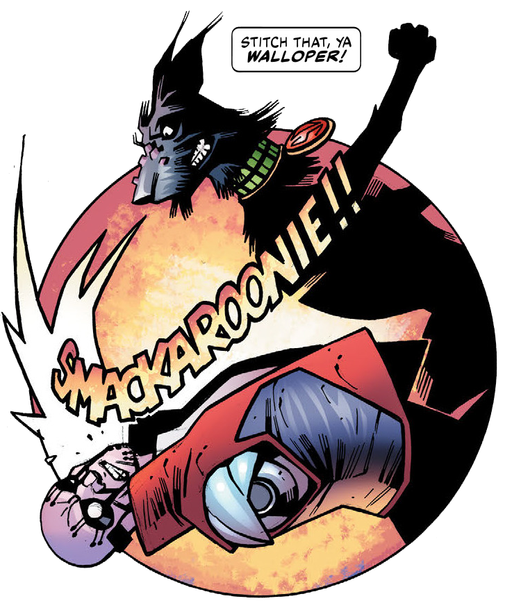 Drawn by actual living legend Colin MacNeil, it features Middenface McNulty’s canine companion, Dougal, as he hunts down a vicious cyborg bounty.