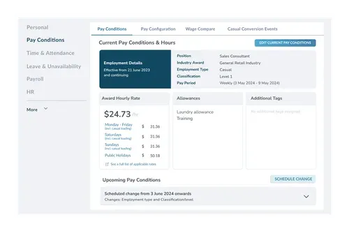 Tanda’s expert compliance team maintains a library of Modern Award pay conditions, covering the most common awards. Modern Award Templates automate calculations for base rates right up to the most complex employment conditions.
