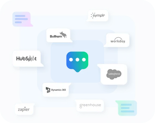 TextUs integrates with the tools your team already uses. For recruiting and staffing teams, TextUs connects with Greenhouse, Bullhorn, JobDiva, Workday, and SAP SuccessFactors—text candidates directly from your ATS and log conversations automatically. For sales and marketing teams, we integrate with Salesforce, HubSpot, Microsoft Dynamics, and Oracle, so every text syncs with your contact records. Healthcare staffing teams can integrate with LaborEdge, Symplr, and Bluesky. Plus, our Zapier integration connects TextUs to thousands of other tools without any developer resources required. Whether you're managing candidates, customers, or leads, TextUs fits into your tech stack.