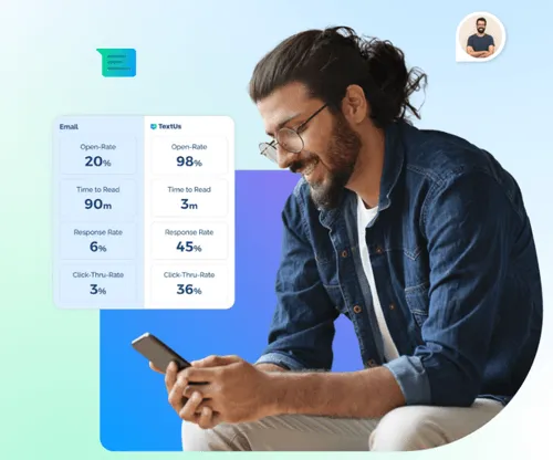 Performance SMS marketing consistently outperforms other channels. SMS messages have a 98% open rate compared to email's 20%, with average response times of 90 seconds versus 90 minutes. For businesses using TextUs, SMS marketing campaigns typically see 25-45% response rates depending on industry. Recruiting teams report 3-5x faster time-to-hire using SMS. Sales teams see 40% higher reply rates on SMS text messages versus cold emails. Marketing teams running SMS campaigns for promotions often achieve 15-25% conversion rates. The performance of SMS marketing comes down to one fact: people actually read their texts. Track delivery, response rates, and outcomes in real-time with TextUs's analytics dashboard.