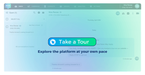 Getting started is straightforward. You'll get a dedicated business phone number (or port an existing one) to send and receive SMS text messages. Import contacts from your CRM, ATS, or spreadsheet, then send individual messages, bulk texts, or set up automated SMS campaigns—all from one platform. Recipients can reply directly, and your team manages conversations in real-time through the TextUs dashboard or mobile app. Everything syncs with your existing tools like Salesforce, Greenhouse, or HubSpot, so your messaging data lives where you need it. Most teams are up and running within hours.
