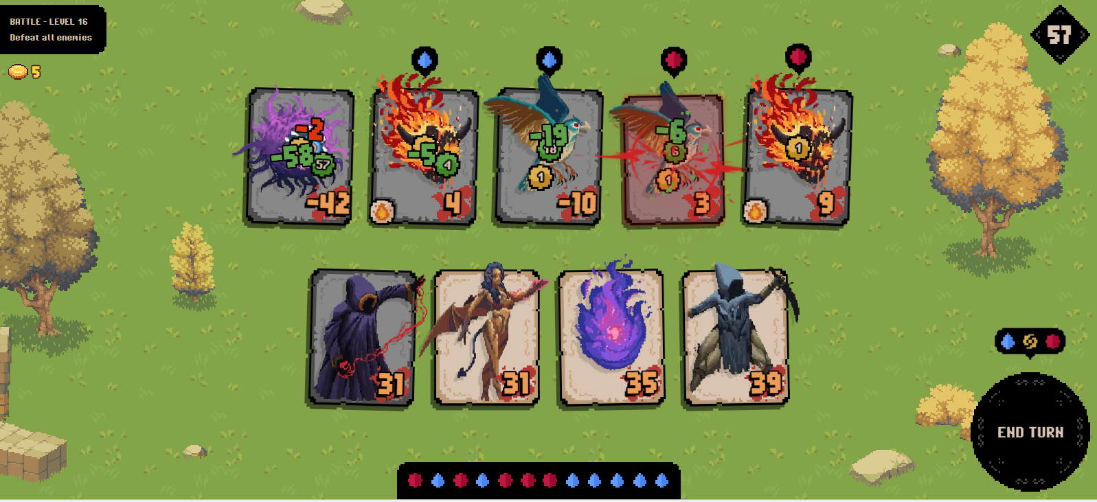 Also I wish you put effort for the cards like Hearthstone, for example, if you pick a card it give you shaking vibe or when you hit the monster the screen shake little bit, and I wish i could know how much damage can the monsters do to me so I know which one to hit first, either way I believe it's got a further if you going to improve it or make a game simmer like this!
