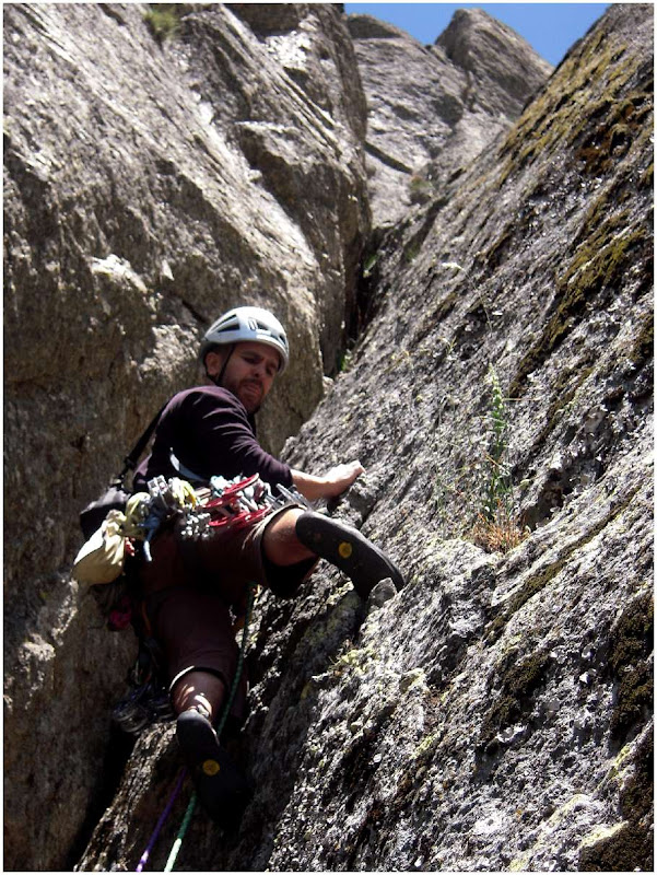 Una lástima que el agarre de salida a la reu estuviera mojado, aunque Joaquin, sábiamente, resuelve el problema dando unos espectaculares pasos de diedro en adherencia, dignas de un clasicorro pedricero.