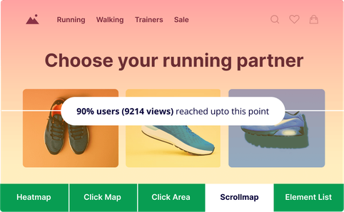 See how deep users scroll on important website pages or app screens. Discover if they are reaching important sections or dropping off sooner. Prioritize content based on scrollmap insights.