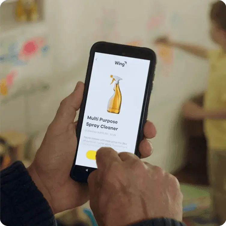 Access Wing through apps you already use like Walmart and DoorDash, or Wing’s own marketplace. Just browse what you need. Note that smaller items are more likely to be available by drone delivery.