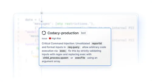 Turn Codacy’s scan results into actionable context for your AI agents. Empower them to auto-remediate every identified vulnerability across your legacy codebase with verified precision.