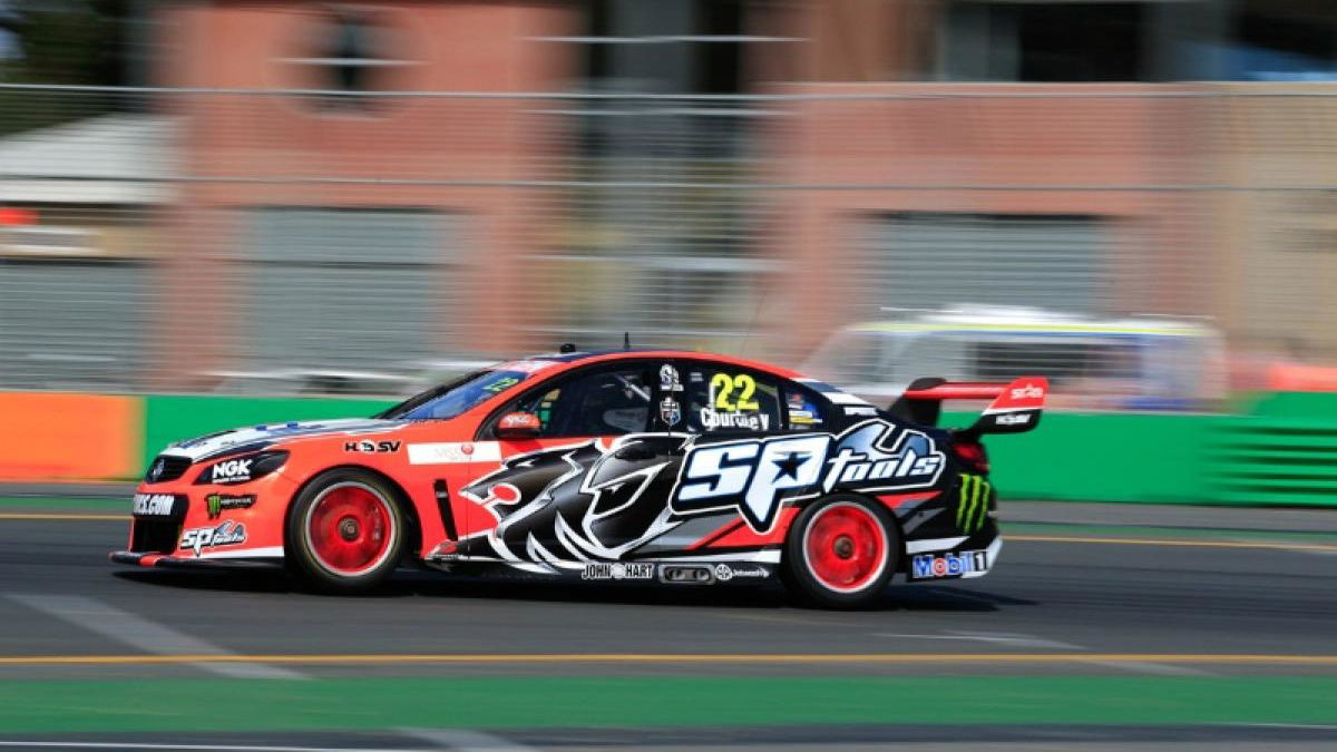 Holden's James Courtney tops the V8 Supercars race three grid deciding top-ten shootout to claim pole around the streets of Adelaide.