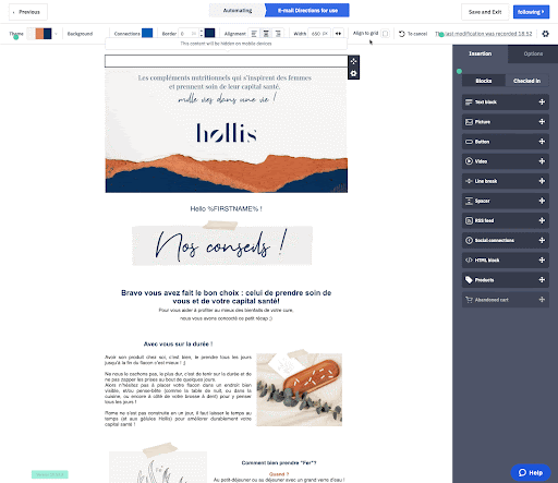 Sa stratégie clé consistait à mener des actions de sensibilisation auprès de différents segments de professionnels de la santé, notamment les sages-femmes, les gynécologues et les pharmaciens, via ActiveCampaign. Ces professionnels prescrivent régulièrement des traitements et recommandent des compléments à leurs patientes. En partageant du contenu auquel ils s’identifient et en leur montrant comment les produits Hollis peuvent aider leurs patientes, Mathilde peut atteindre davantage de ses clients cibles, ce qui lui fait gagner du temps.