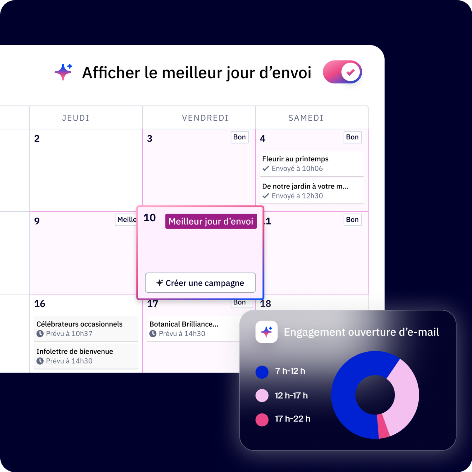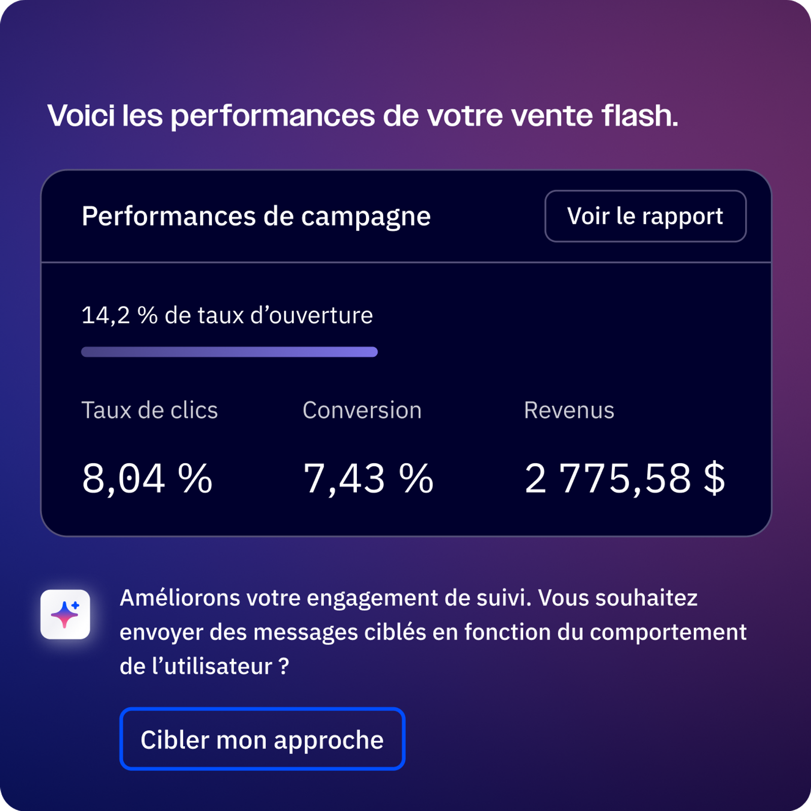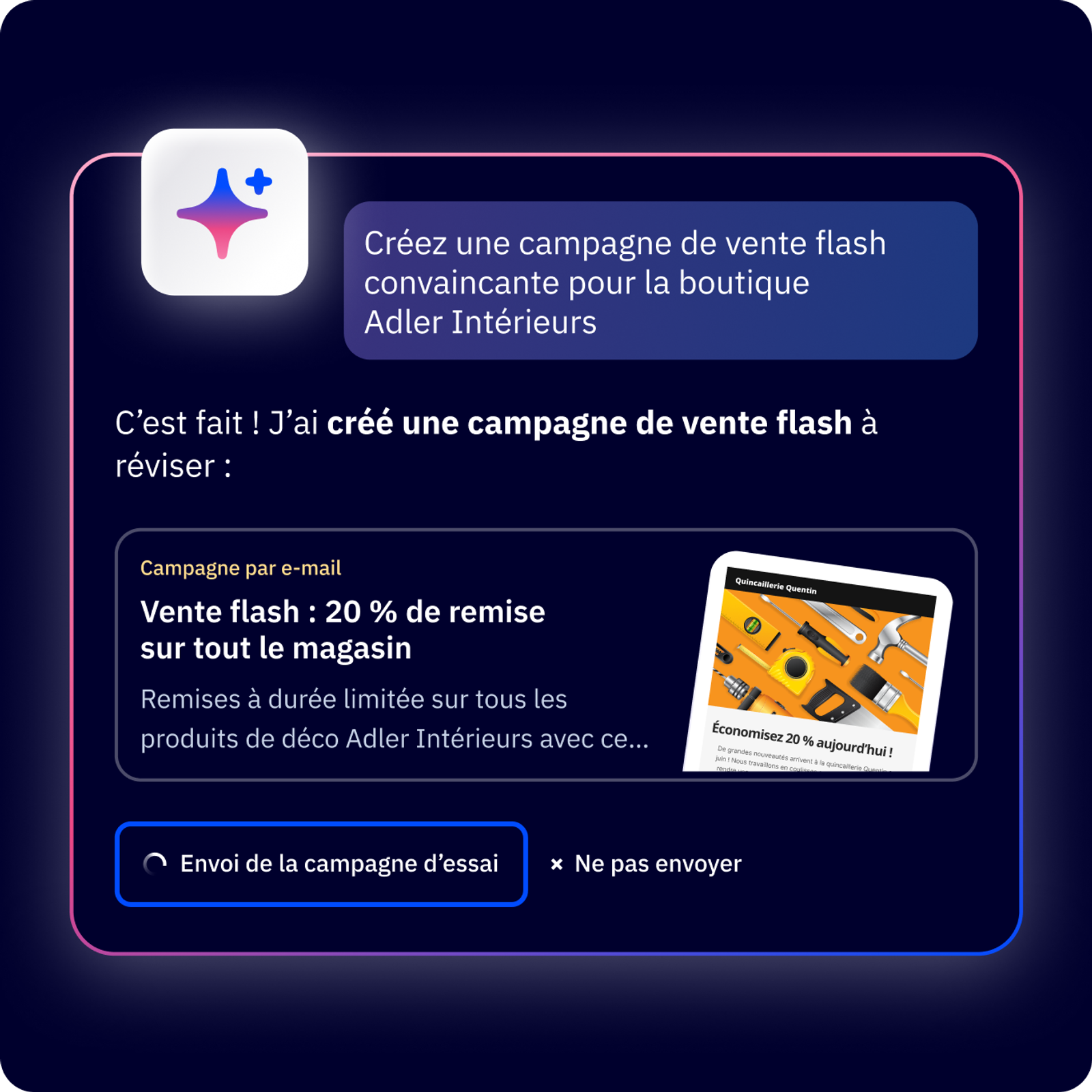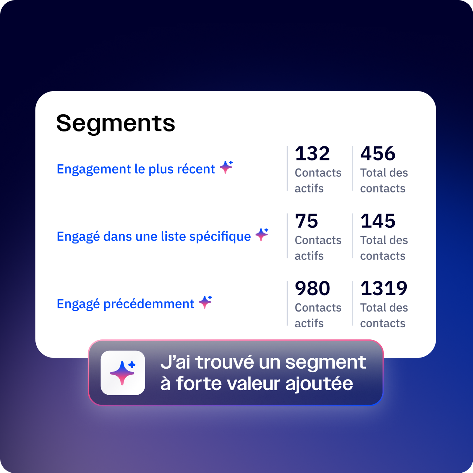 Nos agents IA sont conçus pour gérer votre marketing de manière autonome, de la création de contenu à la segmentation en passant par l’automatisation et la génération de rapports en temps réel. Chacun d’entre eux est concentré, personnalisable et prêt à faire évoluer ce qui fonctionne sur tous les canaux.