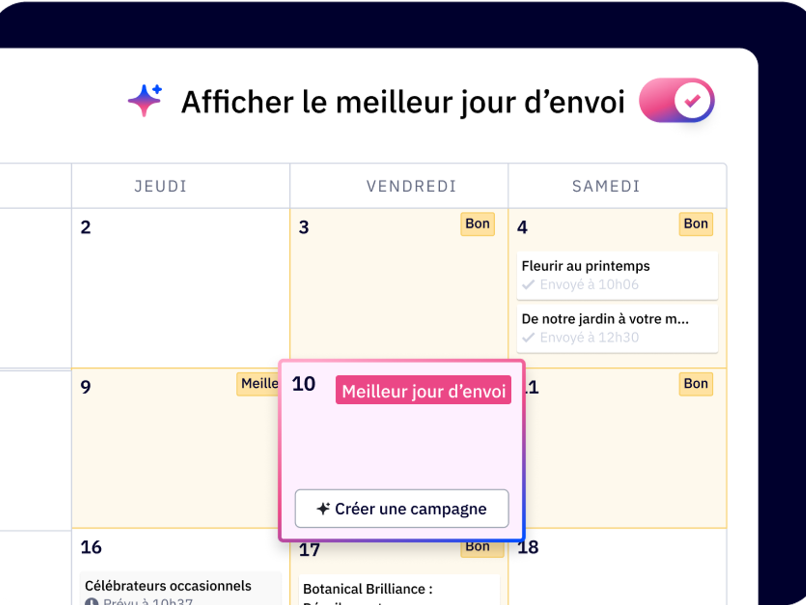Planifiez, programmez et optimisez vos campagnes grâce à des informations et à un calendrier pilotés par l’IA.