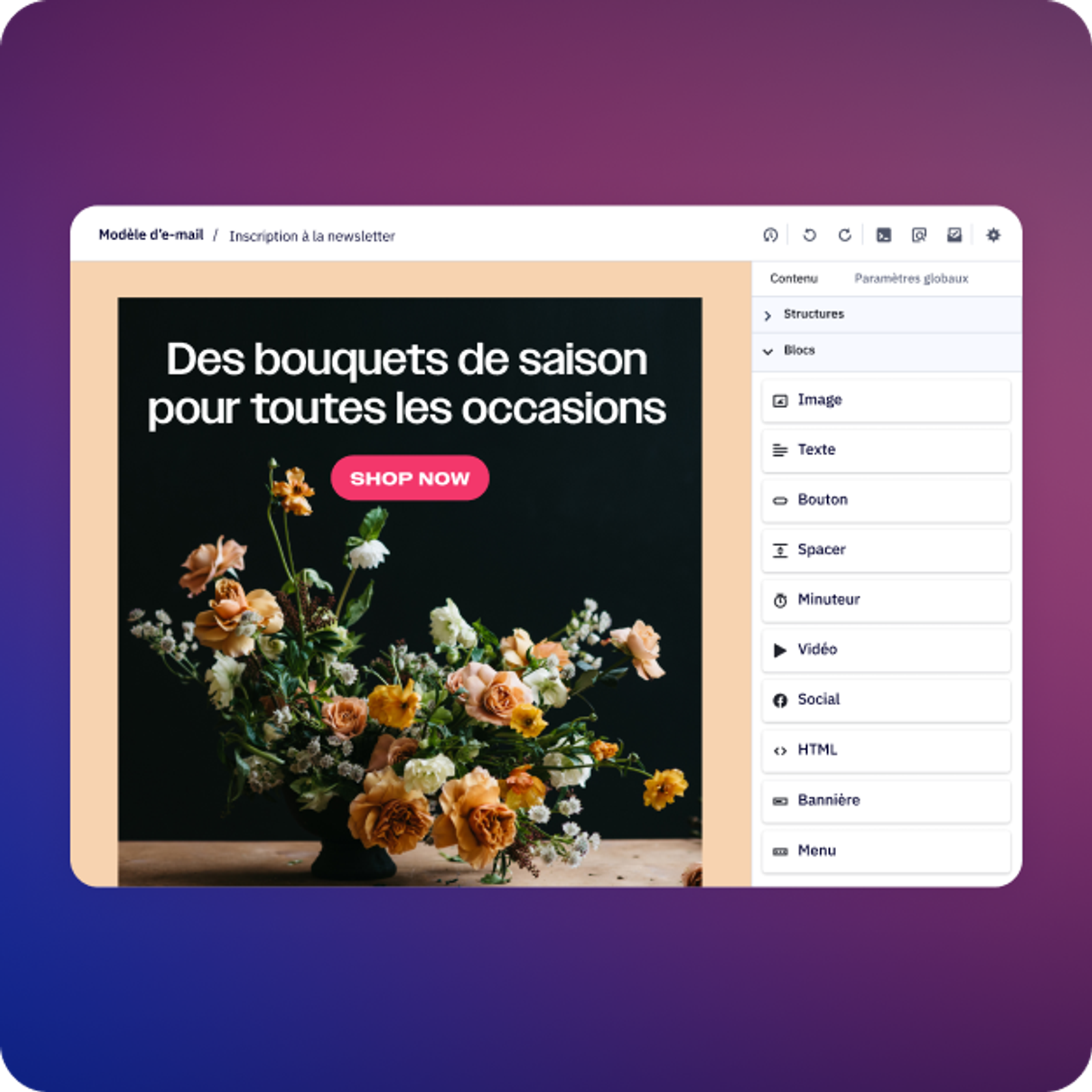 De superbes campagnes avec la simplicité du glisser-déposer et une personnalisation guidée par l’IA.