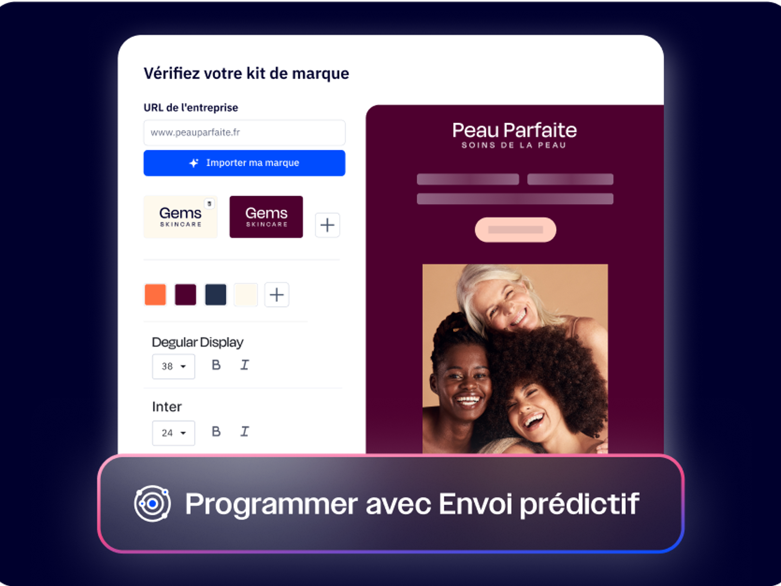 Oubliez le formatage et passez directement à l’envoi. Importez votre identité de marque depuis votre site web en quelques secondes.