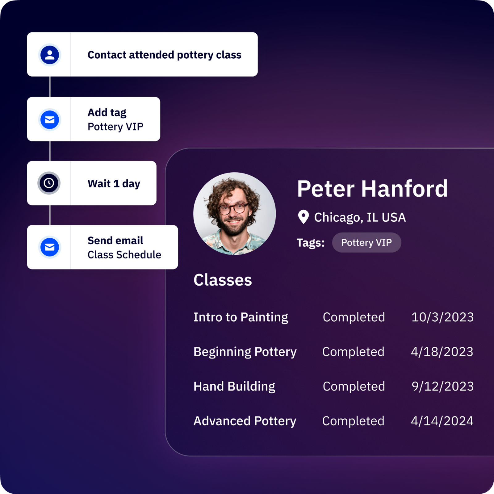 Bring all your unique business data—like appointments, rentals, or customer orders—into ActiveCampaign, so you can create deeply personalized and automated customer journeys.