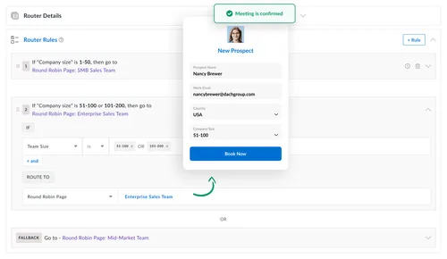 Deliver frictionless buying experience by automating scheduling, lead qualification, and routing so customers can instantly book time with your team.