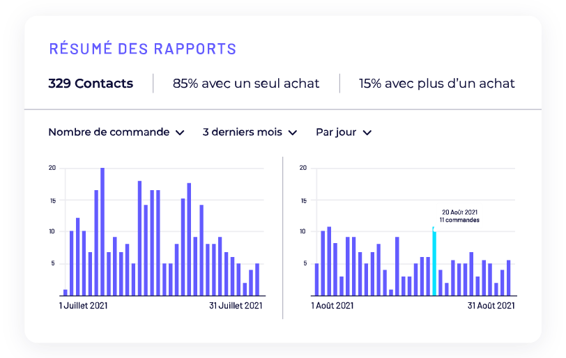 Quoi de plus important que de savoir si vos efforts paient ? Avec un suivi intuitif et visuel, vous pouvez facilement identifier et quantifier vos pics de ventes et les tendances de vos acheteurs.
