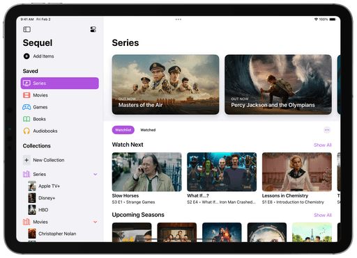 Start tracking items in Sequel and it will automatically organize them for you with handy highlights of just-released titles, upcoming releases and more. Sequel makes it a breeze to browse your library.