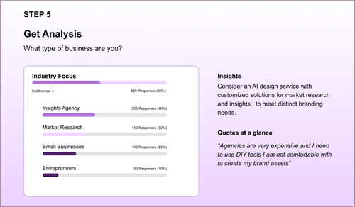 AI probes with real-time follow-ups for deeper insights.
