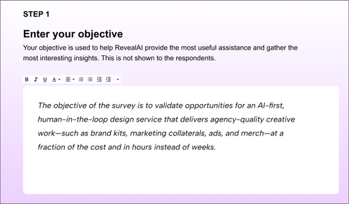 Whether you’re validating a new concept, entering a new market, or listening to employees, Reveal AI makes it faster and easier to understand what people really think and why.